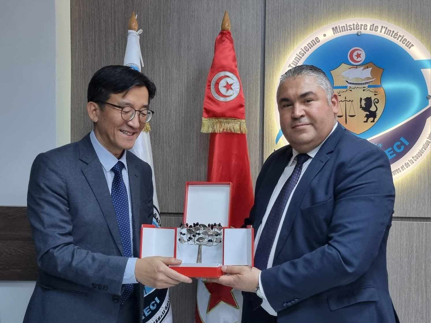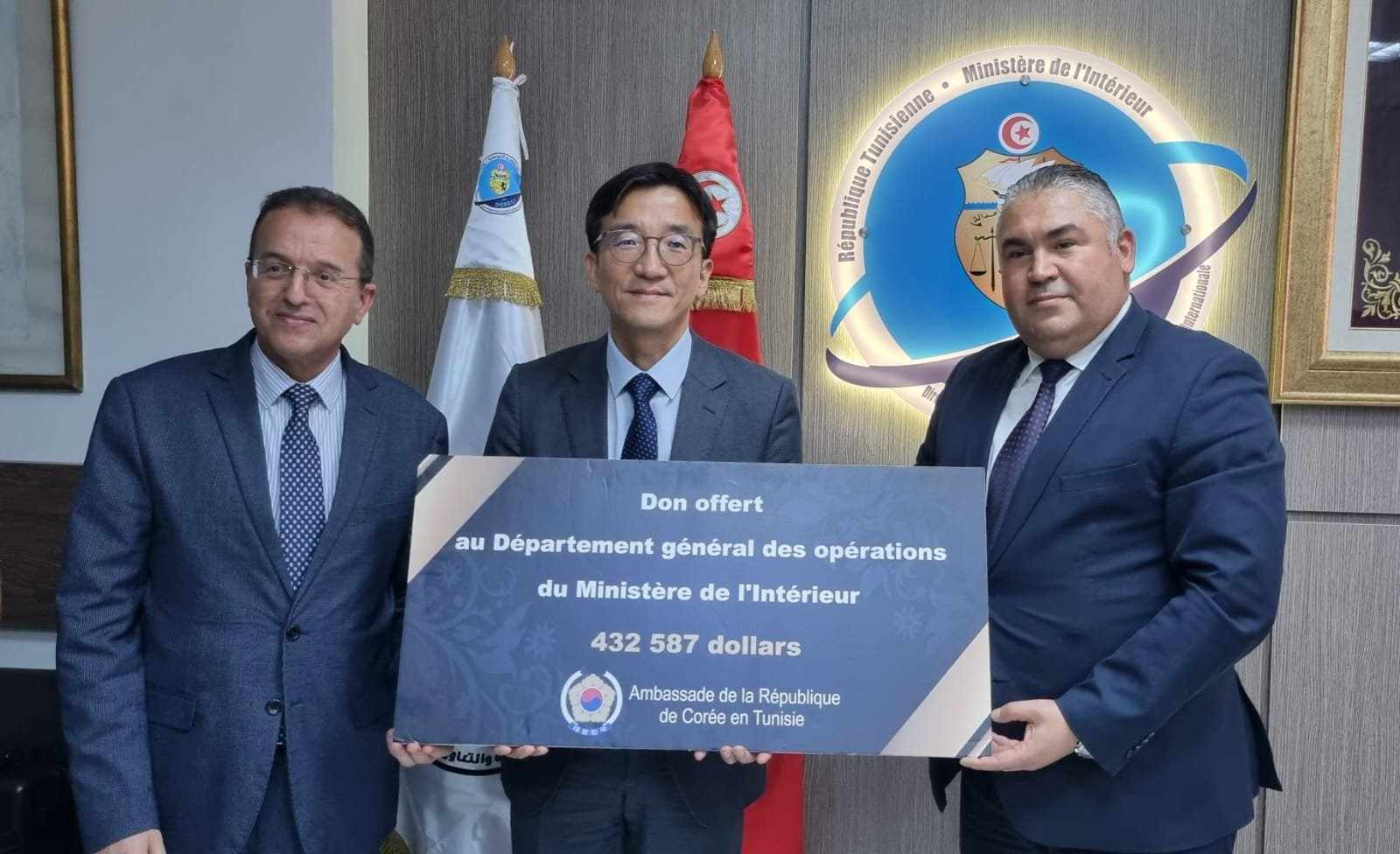 Le mardi 28 janvier, S.E. LEE Tae-won, Ambassadeur de la République de Corée en Tunisie, a fait don d’équipements de sécurité et de sûreté d’une valeur d’environ 430 000 dollars au ministère tunisien de l’Intérieur. Cette donation s’inscrit dans le cadre du soutien de la Corée à la Tunisie en matière de coopération au développement. Les équipements offerts comprennent un système de reconnaissance faciale (matériel et logiciel), un robot mobile équipé de huit caméras, 60 caméras corporelles portables et des dispositifs de soutien. Cette contribution devrait renforcer les capacités de sécurité du ministère tunisien de l’Intérieur, favoriser le développement économique et renforcer la coopération bilatérale. Il est à noter que le système de reconnaissance faciale et les caméras corporelles sont utilisés pour la première fois par le ministère tunisien de l’Intérieur, ce qui confère une importance particulière à cette assistance.