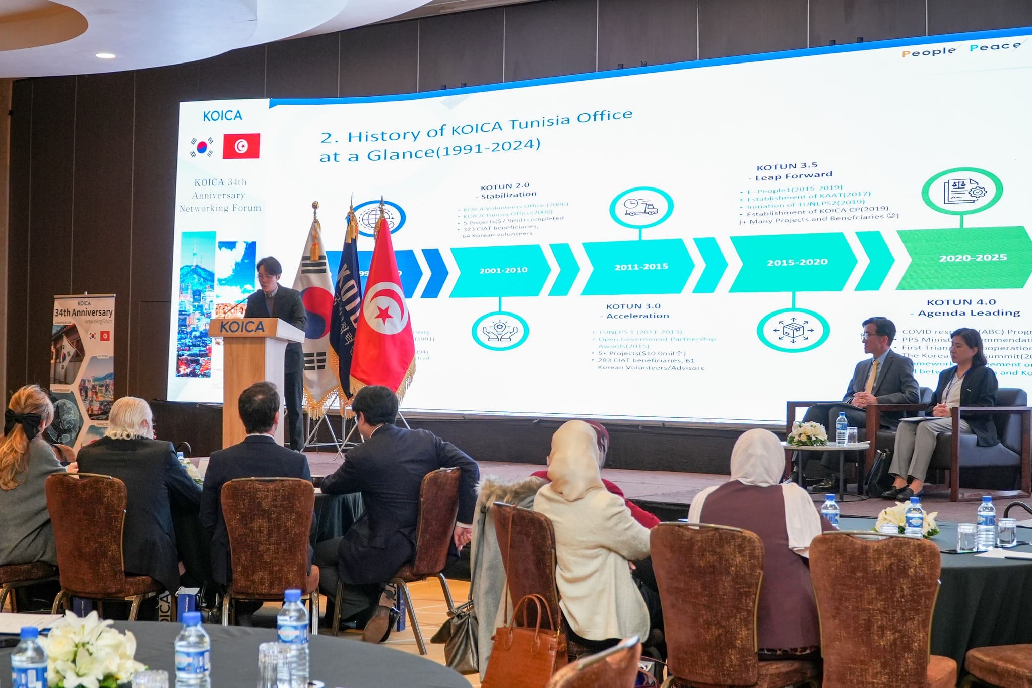 동 포럼에서 이태원 대사는 개발 분야에서 확대되고 있는 한국의 역할을 강조했고, 이남순 KOICA 튀니지 사무소장은 전자정부, TUNEPS 플랫폼, CIAT 및 WFK 프로그램 등 KOICA의 주요 성과를 발표했습니다.