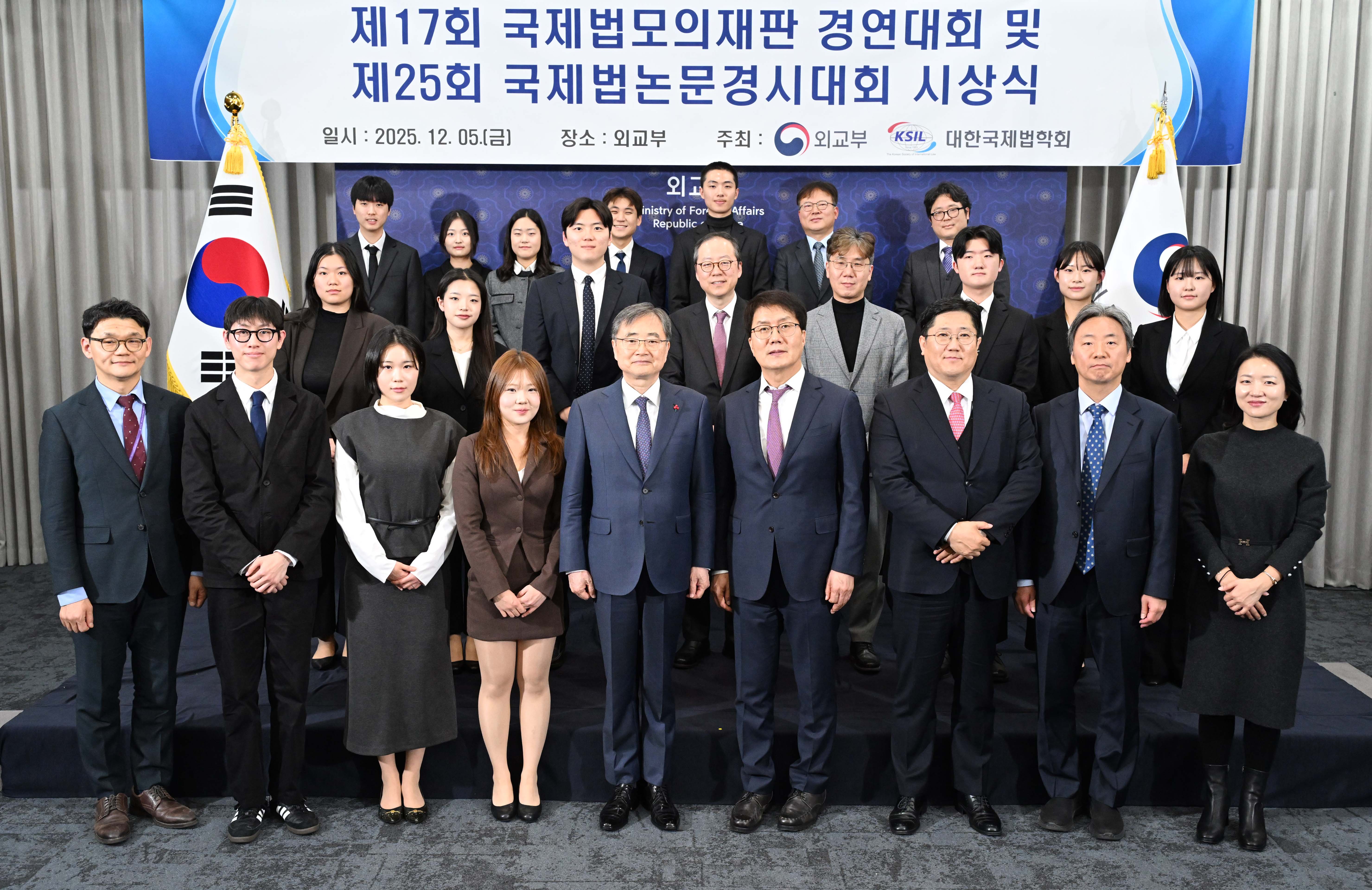 외교부와 대한국제법학회가 공동으로 주최한 ‘국제법 모의재판 경연대회’와 ‘국제법 논문경시대회’ 시상식이 12.5.(금) 15:00 조현 외교부장관 및 학회 관계자들이 참석한 가운데 외교부 18층 서희홀에서 개최되었습니다.